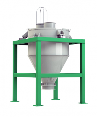 - Весовой бункер на несущей раме для подвески к перекрытию, разгрузочная заслонка с пневмоприводом