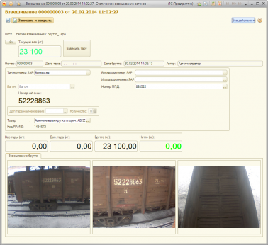 Программное обеспечение предназначено для взвешивания железнодорожного транспорта. В результате взвешивания для каждого вагона и состава вагонов формируется весовая карточка. В карточку заносятся необходимые реквизиты: номер вагона, марка, тип груза, значения веса тара/брутто/нетто. Перечень заполняемых полей расширяется.