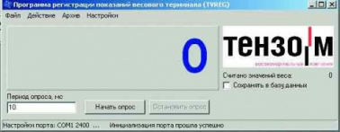 Получать данные с весового терминала с настраиваемым промежутком времени (шагом) от 100 мс до 5 мин