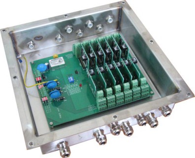 Для применения в составе весоизмерительных систем или дозаторов, находящихся в опасных зонах или помещениях, в которых присутствуют взрывоопасные газы или горючая пыль. Сертифицирован на смеси группы IIB. Маркировка взрывозащиты весового терминала 0Ех iа IIB Т6 Ga и Ex ia IIIC T85°C Da. Маркировка взрывозащиты блока питания [Ex ia Ga] IIВ и [Ех ia Da] IIIC. 8 дискретных выходов. RS-232